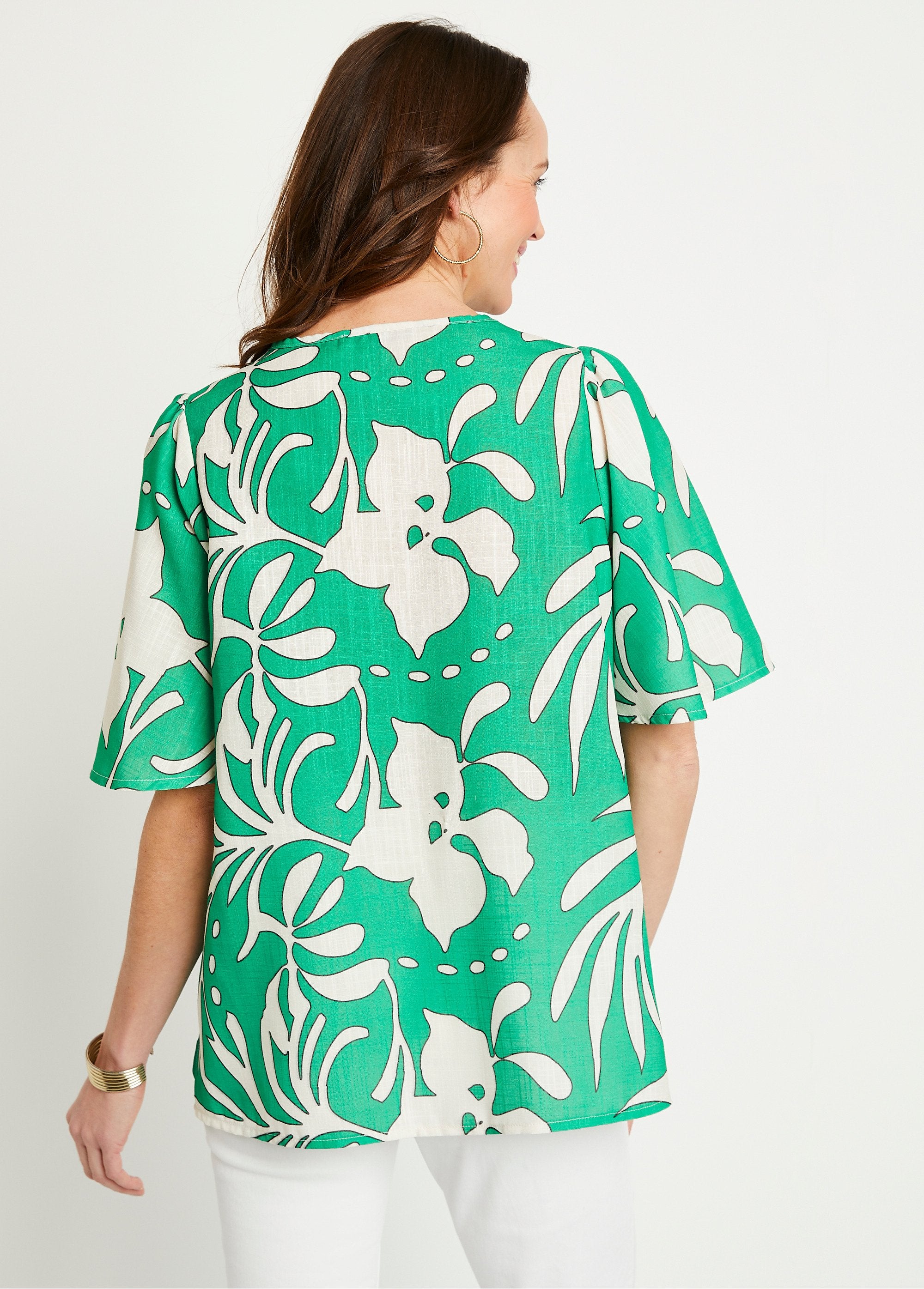 Fancy_3/4-sleeve_straight_tunic_Plain_green_FA1_slim