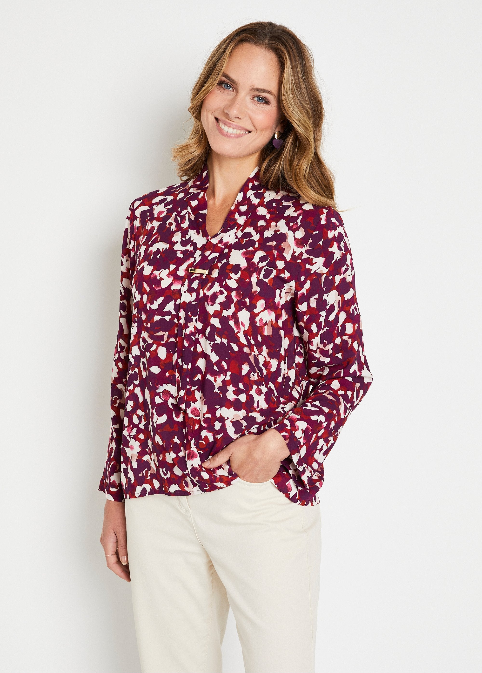V-neck_tie_printed_long_tunic_Fuchsia_and_red_FA1_slim V-neck_tie_printed_long_tunic_Fuchsia_and_red_DO1_slim