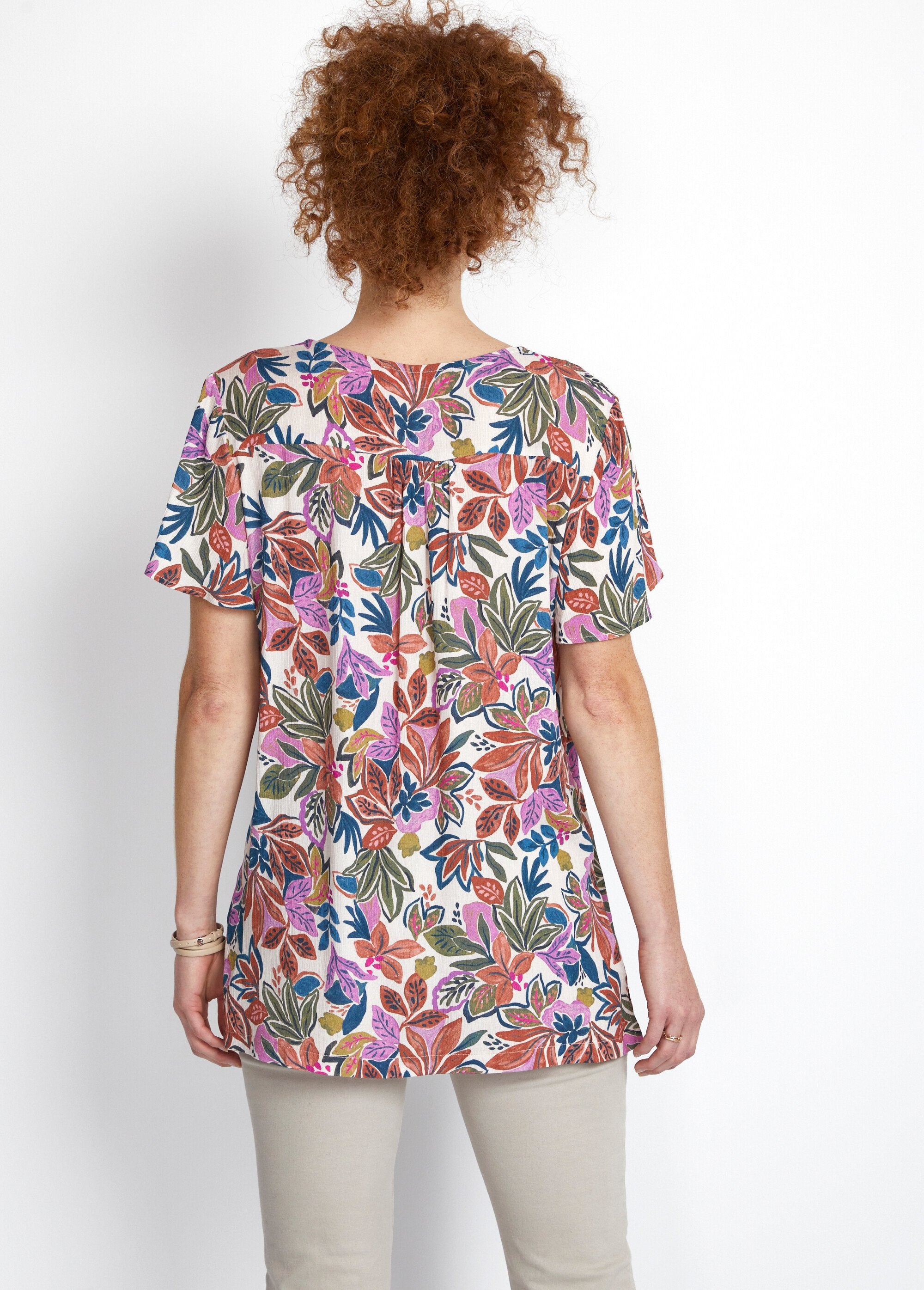 Short-sleeved_plant_print_V-neck_blouse_Multicolor_FA1_slim Short-sleeved_plant_print_V-neck_blouse_Multicolor_DO1_slim